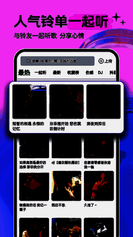 该软件内置强大的智能搜索引擎,支持关键词模糊匹配,只需输入歌手名、歌词片段或歌曲风格,即可迅速定位目标铃声。同时,系统还会根据用户的浏览历史和偏好,自动推荐符合口味的高质量铃声内容,大大提升使用效率。