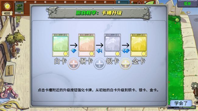 游戏首创卡牌成长机制,所有植物初始以白色基础卡形式登场,随着关卡推进和资源积累,可逐步升级为铜卡、银卡乃至稀有金卡。每提升一级,植物攻击力、攻速或耐久均有显著增强,例如金卡豌豆射手可实现三连发,坚果墙则拥有双倍血量。此外,升级过程融入轻度Roguelike元素,玩家可通过挑战模式获取专属强化芯片,定制个性化战斗流派,极大提升了重复可玩性与策略纵深。