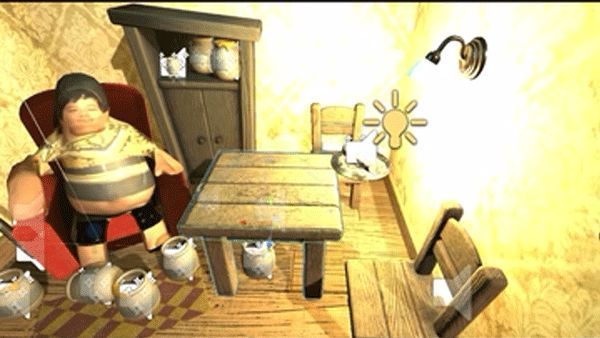 《良子吃焖子》高度还原原视频中的经典场景:主角身穿标志性红花衬衫,瘫坐在老旧布艺沙发上,面前木桌上摆放着热气腾腾的驴肉焖子。环境细节精心打磨,墙贴、茶几零食、电视播放画面均复刻真实生活片段,增强代入感。此外,开发团队还植入多处彩蛋元素,如背景音乐采用原视频音频变奏版,失败时角色会发出标志性笑声,极大提升了粉丝向共鸣度。