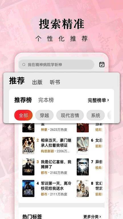 平台汇聚全网热门小说资源,涵盖文学、悬疑、穿越、都市、言情等多个分类,内容全面且更新迅速。通过精细化的分类榜单和排行榜单,用户可以轻松找到心仪作品,彻底告别“书荒”困扰。无论是追更新作还是重温经典,这里都能满足你的阅读欲望。