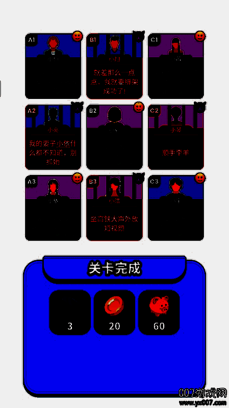 每个关卡都拥有独特的背景设定和线索组合,玩家需要动用逻辑思维,将零散的信息拼凑成完整的真相。从家庭背叛到爱情阴谋,每一个剧情分支都充满悬念与情感张力,让玩家在推理过程中不断猜测、验证并修正判断。