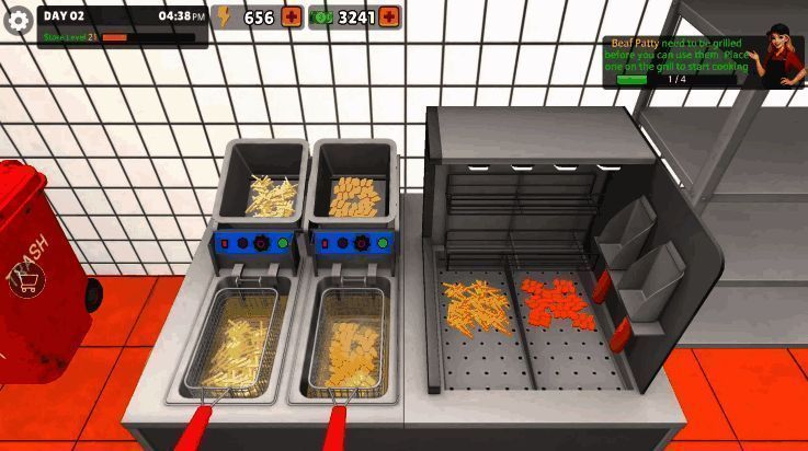 在运营过程中,玩家需亲力亲为地处理每一个环节:从原材料采购、菜单搭配、价格设定,到员工招聘与分工管理,每一步都影响着店铺的盈利与发展。游戏通过高度还原的真实商业流程,让玩家仿佛置身于真实的快餐店经营之中,感受从创业初期的艰难摸索到后期高效运作的成长快感。