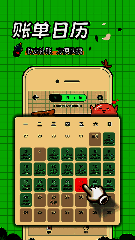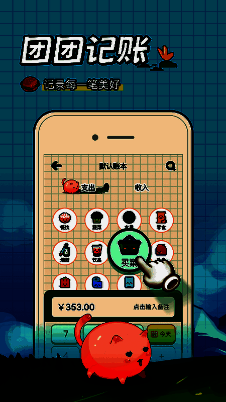 记账app界面展示,主屏幕显示可爱的虚拟角色与简洁的记账按钮"> 团团记账的界面设计简洁明了,色彩搭配温馨柔和,给人一种轻松愉悦的使用体验。即使你是首次接触记账类软件,也能迅速上手,无需复杂学习过程。只需简单的两步操作,即可完成一笔收支记录,极大地提升了用户的使用效率。