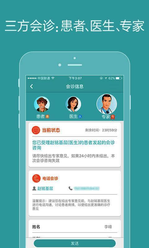 软件的核心功能围绕三层分级诊疗体系展开,实现了专家、医生与基层医生之间的高效联动。通过这一系统,不同层级的医生可以自由组合合作关系,专家可自主组建下级团队并提供会诊和门诊预约服务,医生作为中坚力量连接上下层级,而基层医生则能便捷加入体系并发起会诊或转诊。