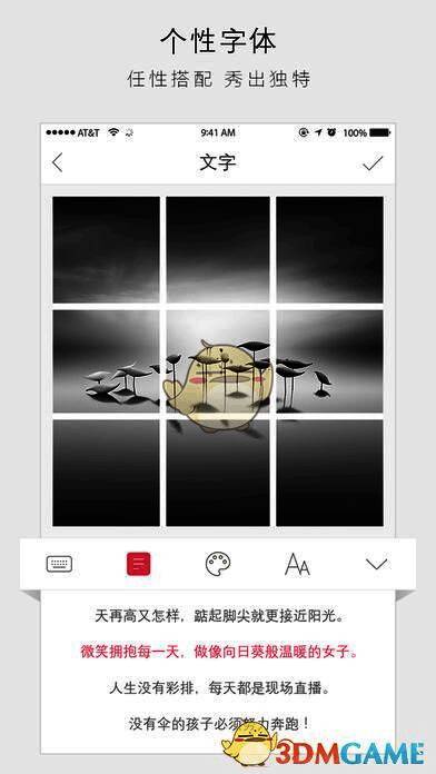 该软件以极简风格为主打,提供一键切图、快速保存等便捷功能,让用户能够更加专注于图片本身的创作。同时,它还支持文字添加、颜色调整、海量模板选择等编辑选项,帮助你打造更具视觉吸引力的作品。