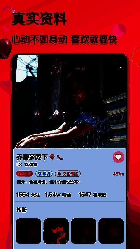 在这里,你可以通过即时搭讪功能开启一段段有趣的对话,感受心与心之间的深度交流。如果你对某位用户有好感,不妨大胆发起邀约,一起去看电影、吃饭,开启现实中的浪漫邂逅。平台采用真人实名认证制度,杜绝虚假账号,确保每一位用户的真实性,让你在交友过程中更加安心。