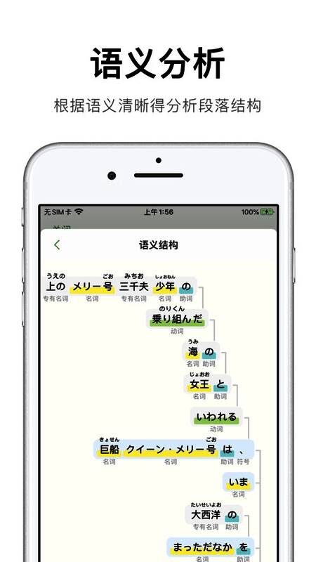 捧读的核心功能之一是基于机器学习技术实现的离线自动断句与词性标记。它能精准识别句子中的单词词性、汉字发音,并通过结构化的方式呈现,帮助用户快速掌握句意,提高阅读效率。此外,App还能分析句子的语义结构,梳理短句之间的修饰关系,让用户对日语语法有更深层次的理解。