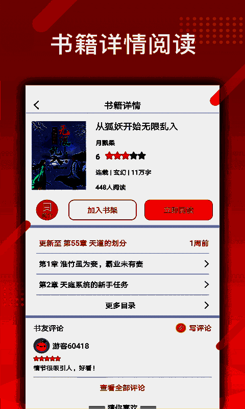 平台内置的智能推荐系统能够根据你的阅读习惯推送合适的作品,节省挑选时间的同时,也不断拓展你的阅读视野。除此之外,所有书籍都附带字数统计与用户评价,帮你快速判断是否值得一读。