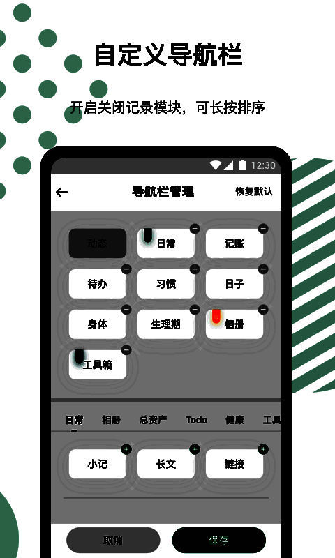 作为一款功能全面的生活助手,《探记记录》不仅提供账目管理、手账编辑、成绩追踪等多元化记录模块,还配备完善的分类标签体系。所有数据均支持云端同步,在有网络环境下自动上传,彻底告别信息丢失烦恼。