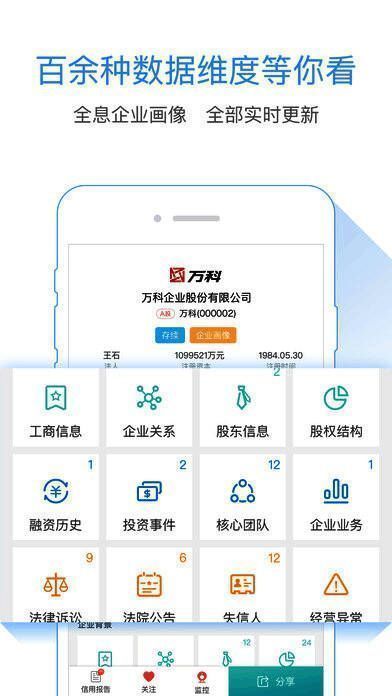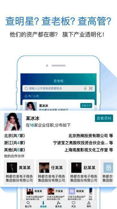《天眼查》收录了超过5000万名明星、老板及企业高管的信息,并覆盖全国99%以上注册企业,用户可以轻松查找目标企业的工商信息、法人代表、股东结构、对外投资等百余种数据维度。无论你想了解某位企业家的商业版图,还是想分析一家公司的股权关系网,只需轻轻一点,即可清晰掌握复杂的企业关联。