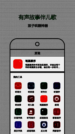 《小孩子点读》app是一款集课内外辅导于一体的智能学习工具,涵盖听课文、听作文、听国学、听故事、听儿歌等多种音频内容,同时还支持汉语字典、英语字典、成语词典查询以及笔画顺序教学等功能。这些丰富的内容不仅满足了孩子多方面学习需求,也有效减少长时间使用对视力的影响。