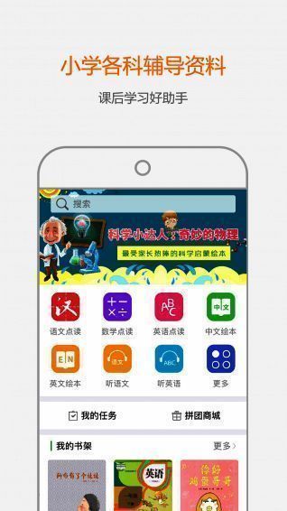 其内容库极其庞大,包括启蒙识字识物点读、中英文绘本阅读、语文与英语课本同步点读等资源,累计数量超过20万册,是国内目前资源最齐全的点读类教育应用之一。