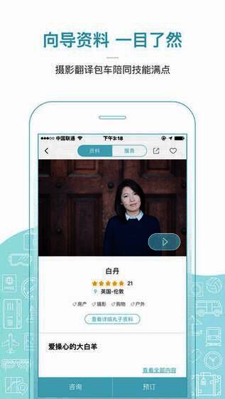 4. 操作快捷透明:通过APP可直接查看向导资料、沟通预订、订单管理及评论反馈,客服响应迅速,5分钟内即可解答疑问。