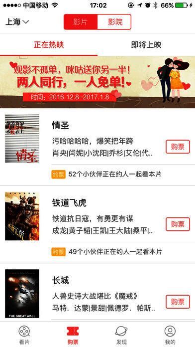咪咕影院推出免流量观影服务(限中国移动用户),让用户在不耗费流量的前提下轻松享受高清影片。此外,平台还限时推出11元超值电影票,如《前任2:备胎反击战》,让观众以更低的成本体验影院级视听盛宴。