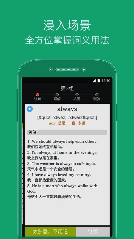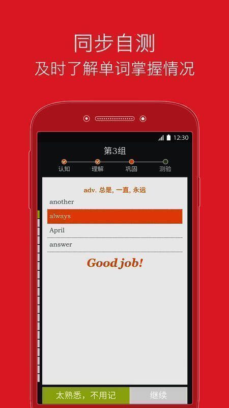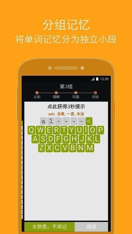 该软件的核心优势在于其基于艾宾浩斯遗忘曲线设计的记忆算法,将单词掌握程度分为五个阶段:陌生、初识、理解、巩固、熟记,并根据用户的学习状态智能调整复习频率。每个阶段配备不同类型的练习方式,包括单词选释义、释义选单词、拼写测试等,确保记忆过程既科学又有趣。