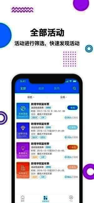 《趣拓校园》由合肥申祥灵聘科技有限公司自主研发,致力于构建以学生需求为核心、社会导向为方向的服务体系。该软件不仅提供丰富的校园活动信息,还支持在线报名与签到管理,帮助学生轻松掌握各类学习与实践机会,真正实现“服务高校第二课堂实践育人”的目标。