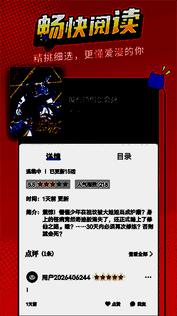 该软件在阅读体验方面下足了功夫,界面设计简洁直观,操作流畅自然。用户可以根据自己的喜好自定义字体大小、背景颜色以及翻页方式,打造专属的阅读空间。此外,智能推荐系统会根据你的浏览记录推荐相似风格的优质作品,提升发现好漫画的效率。