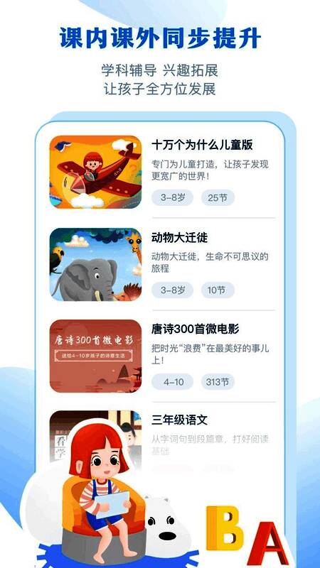 平台特别推出三门爆款课程供用户免费观看,极大激发了学生的学习热情。此外,还有海量学习视频资源可随时点播,帮助孩子随时随地掌握知识。专业的问答服务也是一大特色,孩子可以在线提问,由专业教师进行解答,确保学习效果。