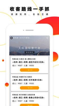 在《来玩旅游》中,用户可以快速查找夜宵房资源,浏览各类旅游线路,并实时获取收客路线信息,操作简便、响应迅速,极大简化了旅游策划流程。