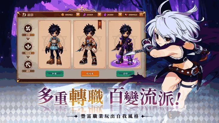 游戏中提供丰富的职业系统,玩家可以进行多达八次的转职选择,每种职业都拥有独特的技能体系。通过自由组合八大技能,打造专属战斗流派,让角色成长路径充满无限可能。这种深度定制化的角色培养机制,极大增强了游戏的策略性和可玩性。