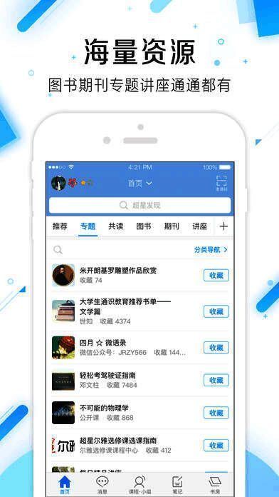 作为面向智能手机和平板电脑打造的专业移动学习平台,《超星学习通》支持用户自助完成多项操作,如图书馆藏书借阅查询、电子资源搜索下载、最新资讯浏览等。同时,它还涵盖学校专业课程学习、小组讨论互动以及校内通讯录查看等功能,满足不同用户的多样化学习需求。