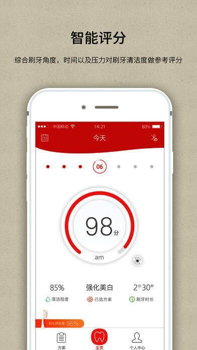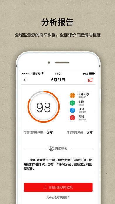 此外,APP还具备多项实用功能:包括刷头磨损状态提示、设备剩余电量查询以及历史刷牙数据对比等,全方位帮助用户掌握口腔护理状况,及时调整刷牙习惯。