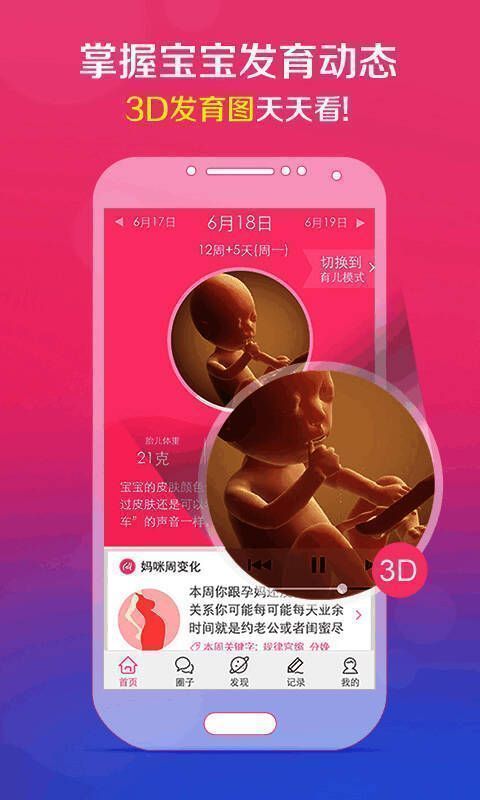 3D发育图:每日更新宝宝发育动态,直观了解胎儿成长过程;