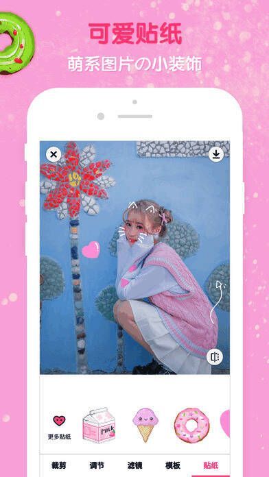 除了基础滤镜调节,《GirlsCam》还提供数十款预设贴纸套装,用户只需轻点屏幕即可完成照片装饰风格切换。无论是爱心、星星还是蝴蝶结等经典少女元素,都能让普通照片瞬间变身杂志封面级作品,仿佛给照片“换上新衣”,甜美指数直线飙升。