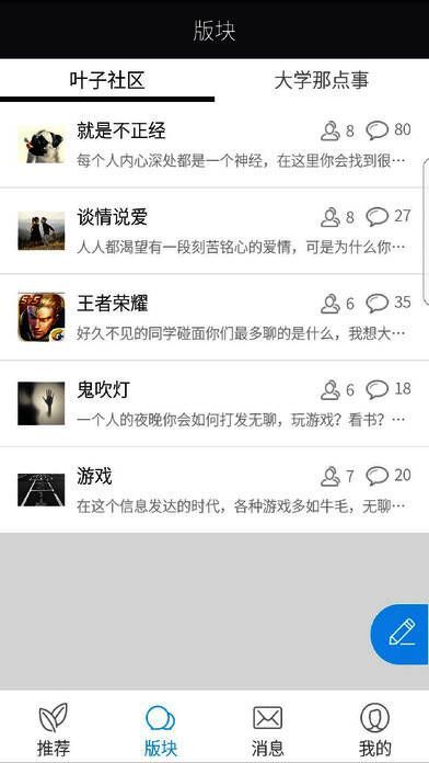 《叶子社区》不仅仅是一个简单的社交平台,它更像是一个可以卸下防备、自由表达的空间。在这里,你能遇到许多与你有着相同兴趣爱好的伙伴,彼此分享生活中的喜怒哀乐。也许不经意间,你还能邂逅那个特别的人。在学习工作之余,进入社区看看大家的帖子,仿佛打开了一扇通往轻松世界的大门,让疲惫的心灵得到真正的放松。