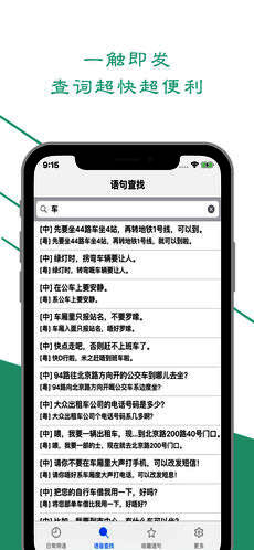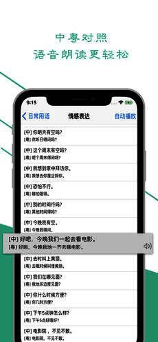 该应用支持中文与粤语对照、真人发音朗读,并配备搜索功能,方便快速查找所需语句。用户可通过左滑收藏重点句子,支持自动连续播放,随时随地畅听学习。此外,还有每日一题挑战,通过真实生活场景中的句子训练听力与理解力。