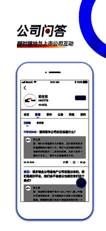 汇路演APP提供路演信息的即时推送服务,用户可以在首页快速搜索感兴趣的路演内容。通过内置的直播功能,用户可随时观看全球范围内的路演直播,无需受限于时间与地点。此外,平台还提供路演预告、会议日历等功能,帮助用户合理安排观看计划。用户还可通过关注功能与上市公司高管进行互动问答,实现高效沟通。