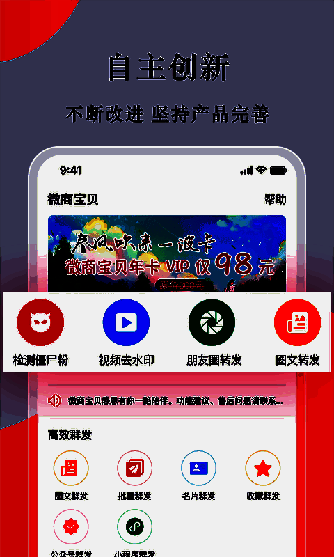 《微商宝贝》的核心优势在于其多样化的推广辅助功能。首先,它支持一键群发消息,无论是图文、语音还是视频形式,都能快速发送给多个好友,极大提升了信息传播效率。其次,该软件内置“僵尸粉检测”功能,帮助用户精准识别无效好友,优化社交圈质量。