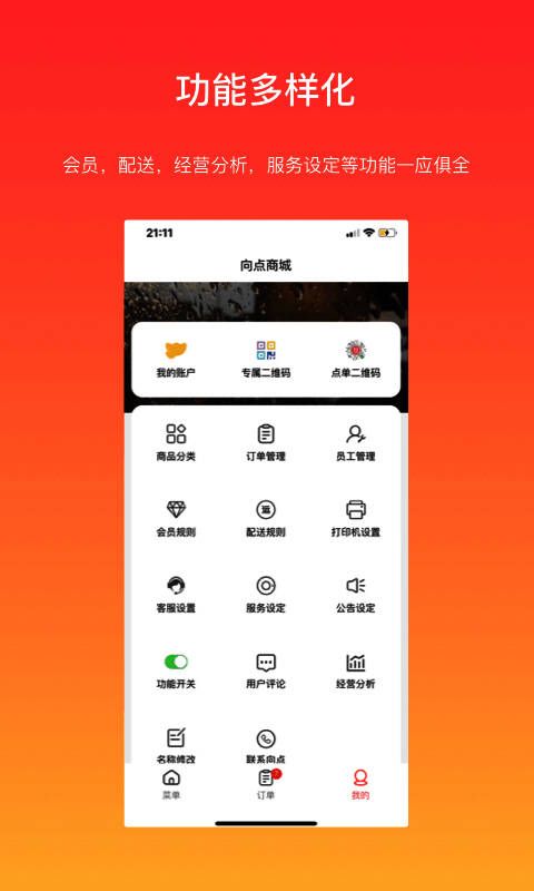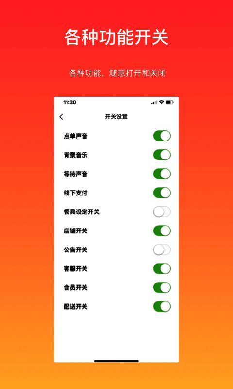 该应用功能覆盖广泛,支持订单整理、数据查看、状态更新等多项实用功能。操作界面简洁直观,商家只需轻点开关按钮即可完成各项设置,无需复杂学习成本,轻松上手。