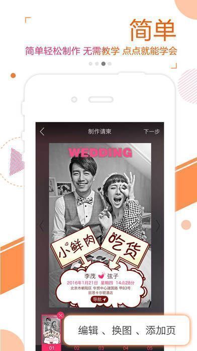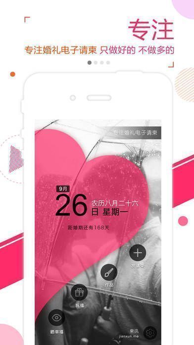 制作完成后,新人可通过微信、QQ、微博等社交平台一键分享,请柬内容包含婚纱照、婚宴时间、地点等关键信息,方便好友查看并参与婚礼。让爱不再隐藏,让幸福被全世界见证。