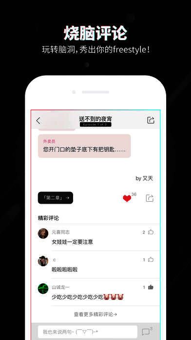 软件不仅内容丰富,还具备多项特色功能:支持快速阅读,让你在地铁上也能轻松享受精彩片段;“二维综艺”打造二次元专属社交空间,聊天不再枯燥;“次元壁突破”功能让用户进入一个虚拟角色扮演的世界;而烧脑评论区则成为众多网友展现智慧与幽默的舞台。