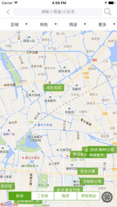 为了提升找房效率,《房产超市》推出了“地图搜房”功能,用户可根据地理位置查找附近的房源,支持地铁房、学区房、打折楼盘等多种筛选条件。