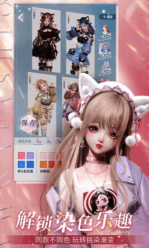 除了穿搭自由之外,《以闪亮之名》还提供了丰富的染色系统。无论是上衣、下装还是裙摆蕾丝,多个部位均可进行个性化染色。上百种配色方案加上渐变、撞色等多种染色方式,让每一位玩家都能打造出独一无二的视觉风格。