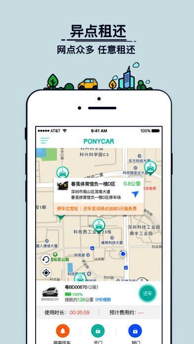 小马用车APP界面展示,清晰显示车辆位置与操作功能">