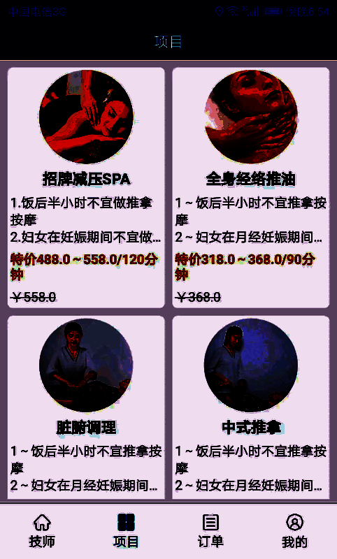 在“泰手推拿”中,用户不仅可以清晰查看各类项目的详细信息,还能在服务完成后对技师进行评价和打分。这一机制不仅提升了服务质量的可控性,也为其他用户提供了参考依据,形成良好的服务闭环。
