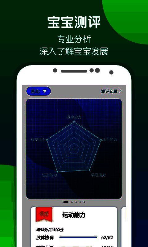 该应用内置智能测评系统,能够通过游戏化的方式检测孩子的运动能力、动手能力以及社交技能,并生成详细的发展分析报告,帮助家长深入了解孩子的成长状态。