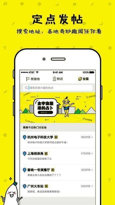 除了创新的聊天方式,《香蕉聊天》还提供了定点发帖功能,用户可以搜索感兴趣的城市或地点,了解当地发生的奇妙趣闻和一手爆料。此外,“附近1公里”匿名发帖功能让用户可以轻松表达心声、表白暗恋对象或吐槽生活琐事,真正实现随心所欲的社交互动。