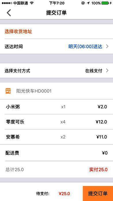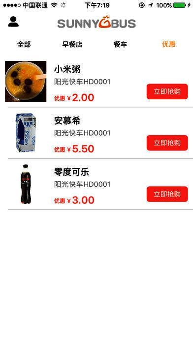阳光快车应用界面展示,清晰显示早餐商品与配送信息">