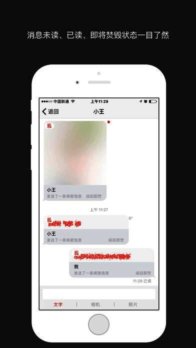 《密讯》的核心功能在于其强大的加密机制和自动销毁系统。所有消息、文本及照片在发送前都会进行端对端加密处理,确保内容仅限接收者查看。更值得一提的是,消息只能被阅读一次,读取完毕后将自动永久删除,杜绝数据残留带来的风险。