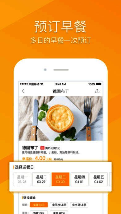 幸福早餐APP界面展示,简洁明了的菜单与预订流程">