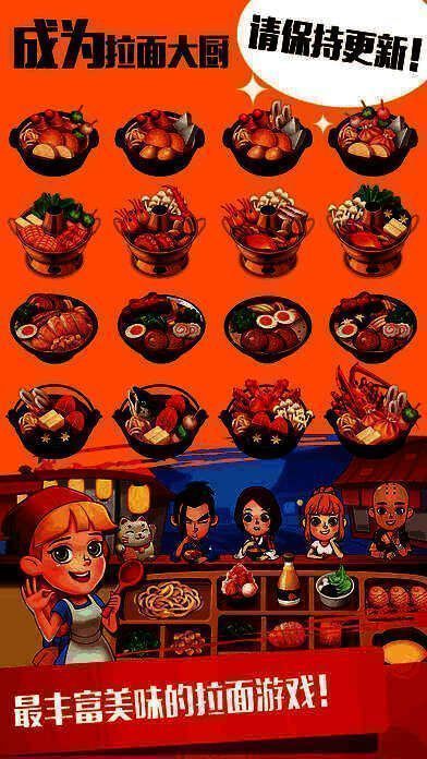《拉面大厨》是一款趣味十足的模拟经营类游戏,玩家将化身为一名拉面店老板,亲手打造属于自己的美食王国。在游戏中,你不仅需要研发各种特色拉面来吸引顾客,还要不断学习新菜谱、升级店铺设施,甚至装饰店面来提升整体吸引力。这款游戏以其精致的画面和轻松的操作方式,赢得了众多模拟经营爱好者的青睐。