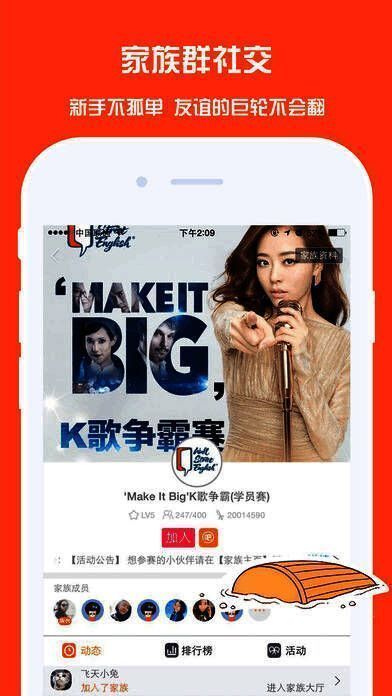 开启在线K歌新时代,创建房间邀请好友一起排麦畅唱,随时随地想K就K。家族成员也可边聊天边合唱,共享欢乐时光。