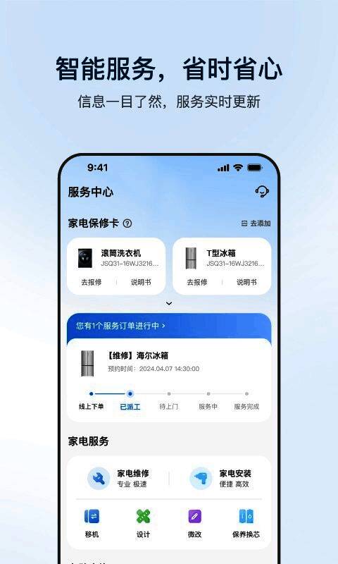 从家电安装、使用指导到售后维护,海尔智家提供全流程服务支持。用户可通过APP一键预约清洁保养,或随时联系在线客服解决问题,确保每一次使用都安心无忧。