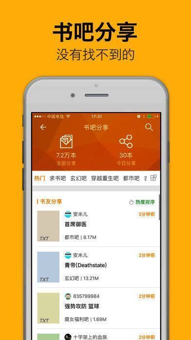 该软件内置多个专业书吧,如玄幻吧、都市吧、言情吧等,汇聚千万书友在线互动。用户不仅可以在这里评论书籍、推荐好书、求资源,还能通过交流拓展阅读视野,实现真正的以书会友。