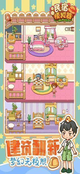 《民宿模拟器免广告版》是一款画风清新可爱的模拟经营类游戏,专注于为玩家带来轻松休闲的民宿管理乐趣。在游戏中,玩家将扮演一位民宿经营者,在风景如画的小镇中打造属于自己的梦幻民宿。通过不断升级设施、布置房间、接待游客,逐步提升知名度,吸引来自各地的旅客前来体验。游戏采用放置挂机机制,操作简单易上手,适合各类玩家在碎片化时间中享受经营的乐趣。