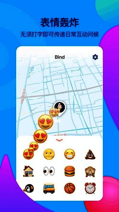除了基础定位功能外,《Bind》还加入了丰富的互动元素,比如隔空发送表情包、虚拟拥抱等特色玩法,进一步提升情侣间的沟通趣味性。这种创新性的设计不仅打破了传统聊天工具的局限,也让交流变得更加生动有趣。